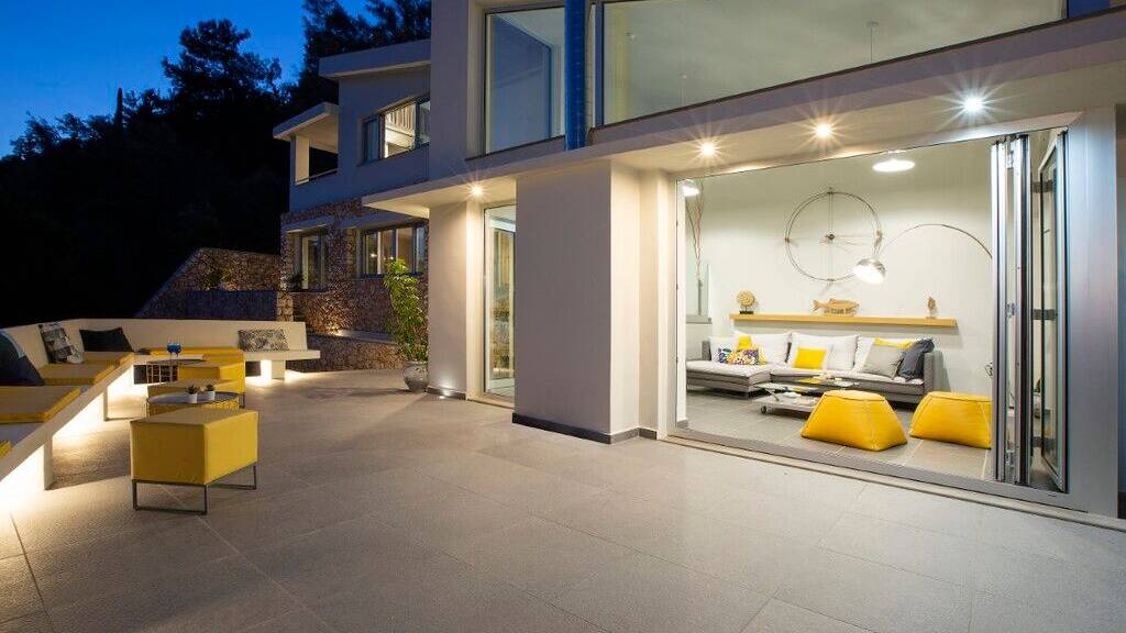 Zum Verkauf: Moderne Luxusvilla in der Umgebung von Nydri, an der Ostküste von Lefkada mit Panoramablick auf das Meer von jedem Punkt - 167 m²Fertiggestellt im Jahr 2014, vereint diese Immobilie modernes Design, hochwertige Materialien und sorgfältige Handwerkskunst und bietet ein luxuriöses Refugium in einer der malerischsten Regionen des Mittelmeers.