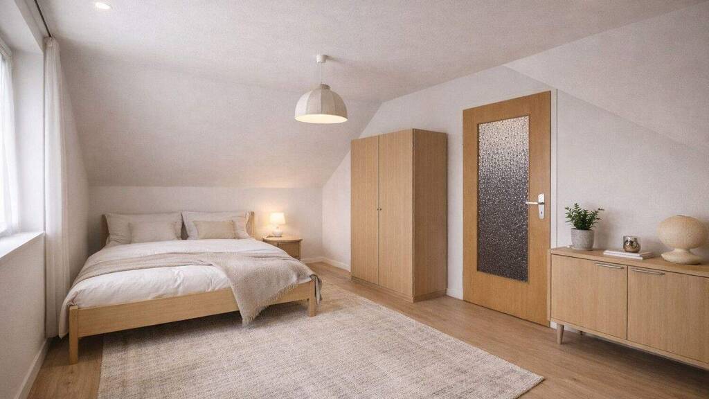 Im Dachgeschoss stehen ein sehr großzügiger Vorraum sowie ein weiteres Schlafzimmer zur Verfügung. Der Vorraum eignet sich ideal als Arbeitsbereich, Hobbyraum oder zusätzliche Aufenthaltsfläche. Die Beheizung des Dachgeschosses erfolgt über Nachtspeicheröfen, während in den anderen Etagen Gaseinzelöfen installiert sind.