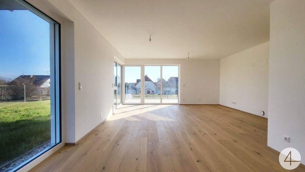 Die Neubauwohnung liegt im Erdgeschoß eines 4 Parteienhauses und bietet 2 zentral begehbaren Schlafzimmer - einen großen offener Wohn-Ess-Küchenbereich mit großen Terrassentüren und Fenstern ausgestattet.