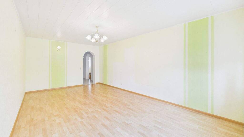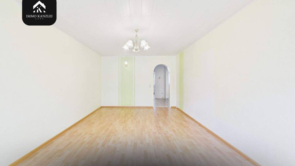 Gegenüber der Küche liegt das helle und geräumige Wohnzimmer, das mit seiner angenehmen Atmosphäre zum Entspannen einlädt und vielfältige Einrichtungsmöglichkeiten bietet. Ein weiteres flexibel nutzbares Zimmer ergänzt den Grundriss und eignet sich ideal als Kinderzimmer, Gästezimmer oder Homeoffice - je nach Lebenssituation.