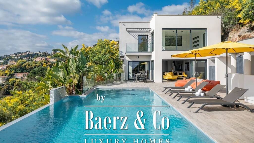 just 30 minutes from la croisette and 10 minutes from the beaches, this stunning contemporary villa, nestled at the gates of cannes, offers breathtaking views of the sea and the estérel hills.