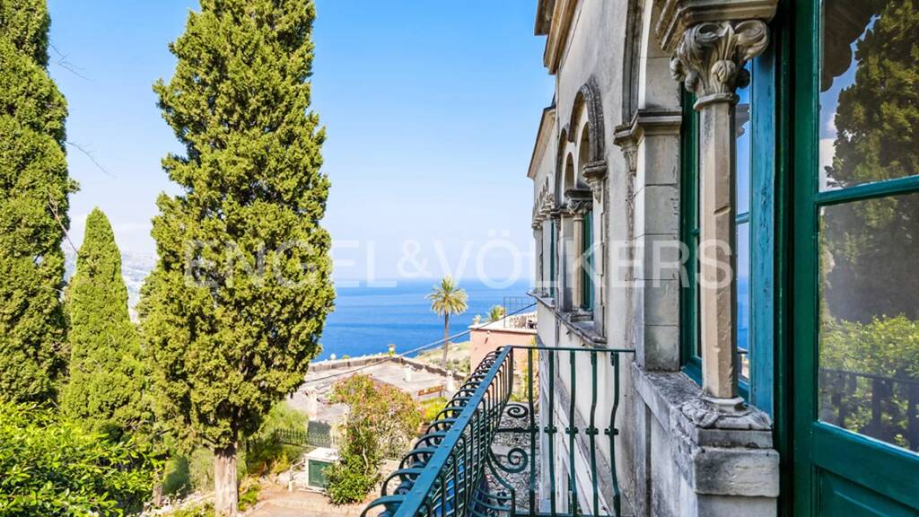 Diese elegante Villa mit Garten und großer Terrasse mit spektakulärem Meerblick, liegt nur wenige Schritte vom Corso Umberto in Taormina entfernt.