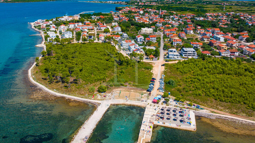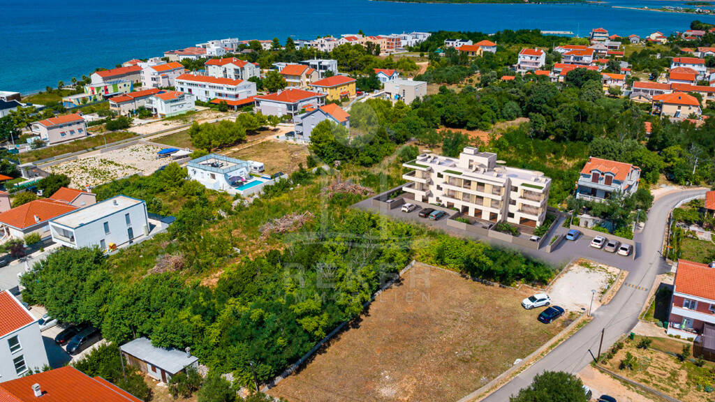 Nur wenige Schritte vom Meer entfernt - hier wohnen Sie im zweiten Obergeschoss eines modernen, dreistöckigen Wohnhauses mit insgesamt neun Einheiten. Das Gebäude steht am Ende einer ruhigen Zufahrtsstraße in einem gepflegten Wohnviertel von Privlaka. Von der Straße sind es etwa 200 Meter bis zum flachen Strand mit Badeplateaus, schattigen Liegeflächen und türkisblauem Wasser. Zwei eigene Außenstellplätze sorgen für bequeme Ankunft, auch in der Hochsaison. Ein Aufzug bringt Sie direkt in die Penthouse-Etage.