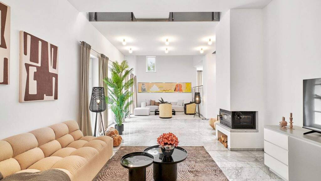 Ideal geschnittene Räumlichkeiten, edle Carrara-Marmorböden und -bäder, eine elegante Einbauküche aus dem Jahr 2021, sowie ein Saunarium und Maßeinbauten schaffen ein höchst attraktives Wohnumfeld. Komplettiert wird dieses außergewöhnliche Ensemble durch eine Dreifach-Garage mit Vorrüstung für E-Mobilität.