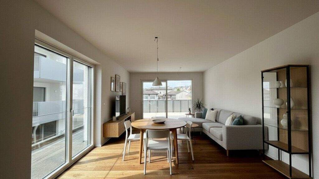 Egal, ob im Da oder im Durt. Deine neue Wohnung ist modern und außerordentlich hochwertig ausgestattet. An jeder Ecke findet man Details und Besonderheiten wie zum Beispiel Hebeschiebetüren oder edle Parkettböden und großflächigen moderne Fliesen. Auf die hochwertigen Materialien trifft außerdem eine überdurchschnittlich hohe Raumhöhe, die dein neues Heim noch geräumiger macht. Hell und freundlich sind alle Räume dank großer Fensterfronten und ganz unkompliziert kann mit den elektrische Raffstores alles verdunkelt werden. Gediegen und unkompliziert - So mag man das Leben im Innviertel und genau nach diesen Ansprüchen sind die Wohnungen geplant.