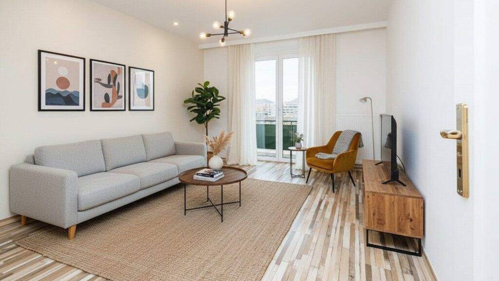 Wohnzimmer, Schlafzimmer und das dritte Zimmer (ideal als Kinderzimmer oder Büro) überzeugen mit Großzügigkeit und Helligkeit. Der elegante Bodenbelag sorgt in allen Räumen für ein harmonisches Gesamtbild.