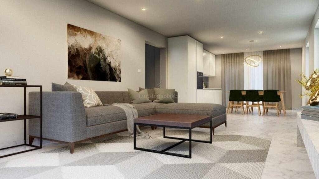 Die 65 m2 große Wohnung befindet sich im ersten Stock und besteht aus zwei Schlafzimmern, Wohnzimmer mit Küche und Esszimmer, Bad und Loggia. Es verfügt über einen Abstellraum und einen Parkplatz.
