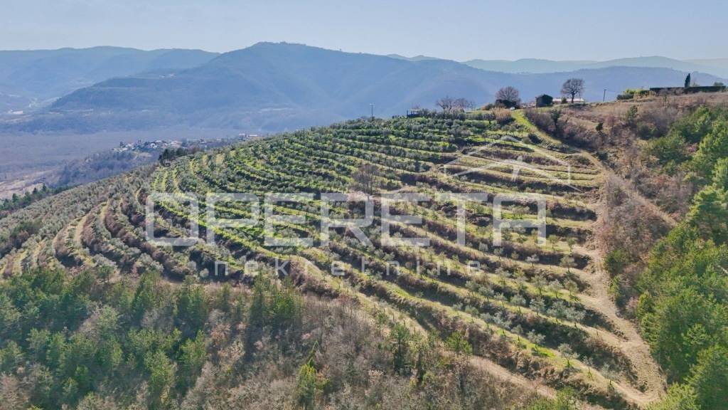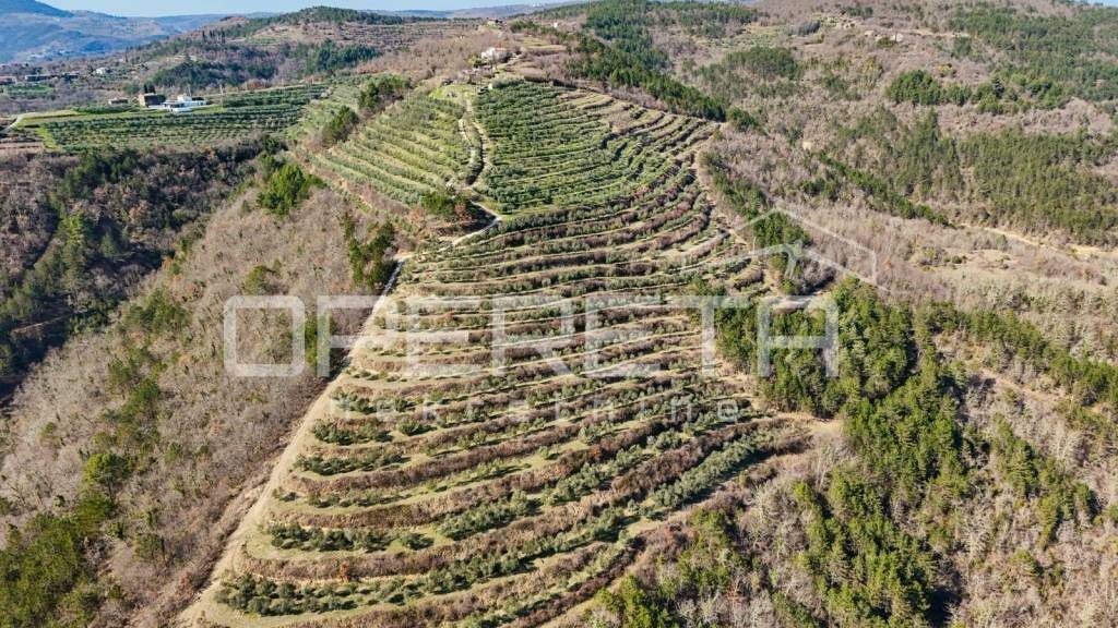Ein großes Anwesen mit einer Fläche von fast 170.000 m2 in der Nähe von Motovun steht zum Verkauf. Das Anwesen ist funktional aufgeteilt in Bauland (2.727 m2), Olivenhaine (86.588 m2), landwirtschaftliche Flächen (13.114 m2) und Wald (65.414 m2). Der bebaubare Teil umfasst ein bestehendes Haus, ein für den Bau vorgesehenes Objekt, eine Scheune zur Rekonstruktion sowie die Überreste der historischen Kirche des Hl. Cosmas. Die Olivenhaine sind aktiv und ertragreich, und das gesamte Areal ist infrastrukturell mit Strom, Wasser und einem Bewässerungssystem ausgestattet. Der Verkaufspreis beinhaltet alle dazugehörigen Maschinen, die Ausrüstung für den Olivenanbau sowie Montageobjekte auf dem Gelände. Zudem besteht die Möglichkeit, ein zusätzliches Baugrundstück von 2.473 m2 mit einem Steinhaus zu erwerben.