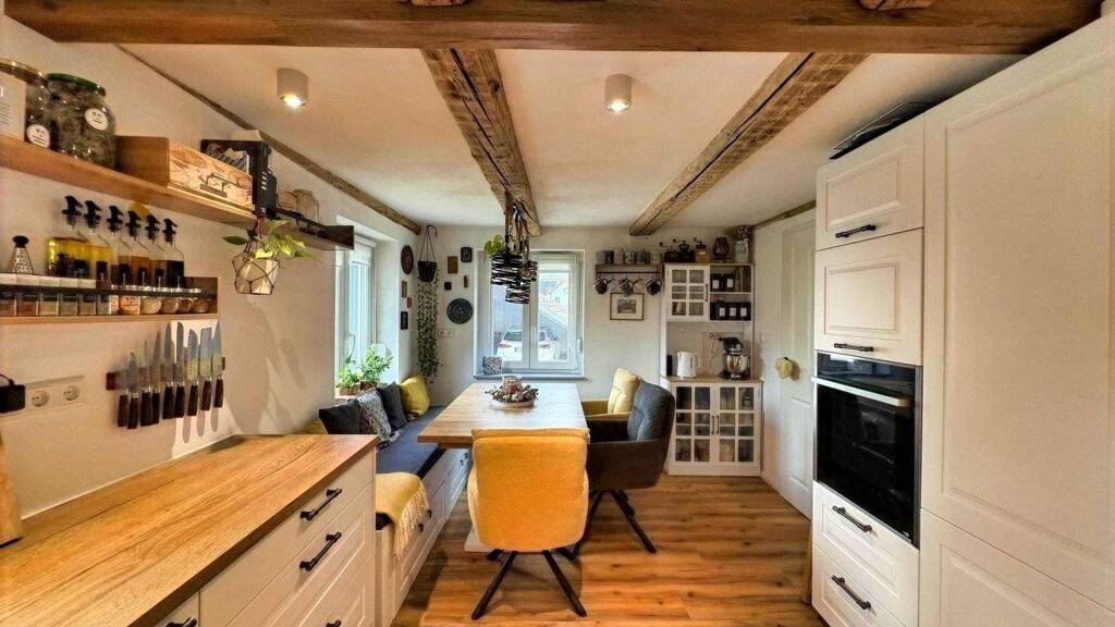Dieses Haus vereint den Charme vergangener Zeiten mit modernem Wohnkomfort und präsentiert sich als echtes Unikat in Stetten ob Lontal. Lassen Sie sich von der besonderen Atmosphäre, den vielfältigen Nutzungsmöglichkeiten und der attraktiven Umgebung begeistern!