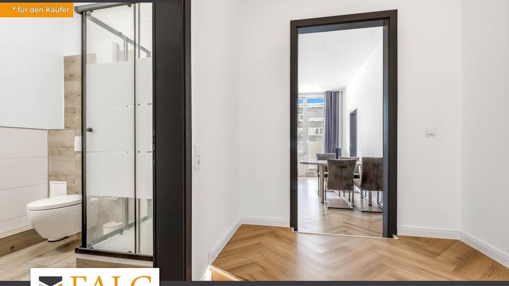 Die Wohnung liegt auf einer separaten Etage mit insgesamt fünf Einheiten. Alle Wohnungen auf dieser Etage stehen ebenfalls zum Verkauf und können optional im Paket erworben werden, eine seltene Gelegenheit für Investoren mit Weitblick.