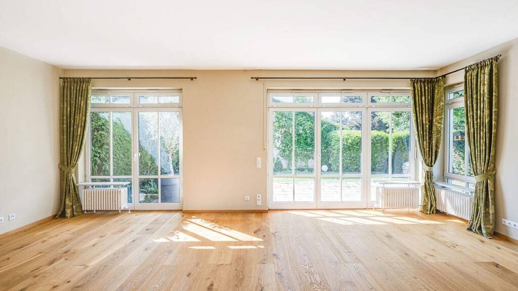 Bereits der Eingangsbereich mit großzügiger Garderobe und Gäste-WC vermittelt ein repräsentatives, offenes Wohngefühl. Über eine Glastür eröffnet sich der rund 50 m² große Wohn- und Essbereich mit verglastem Wintergartenerker zum lichtdurchfluteten Herzstück des Hauses. Die 2023 komplett erneuerte Einbauküche mit hochwertigen Markengeräten ist zum Speisebereich geöffnet und lädt zum Kochen und Genießen ein. Bodentiefe Sicherheitsfenster verbinden den Wohnraum nahtlos mit der Westterrasse und dem 2022/2023 neu gestalteten, pflegeleichten Garten, der dank vollständigem Sichtschutz maximale Privatsphäre bietet.