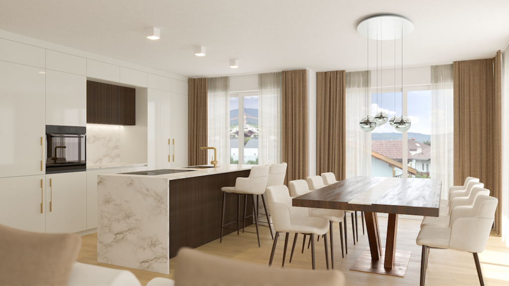 Bei der architektonischen Planung wurde besonderer Wert auf großzügige Fensterflächen gelegt, insbesondere an der Süd-, West- und Ostseite, um eine erstklassige Wohnqualität zu gewährleisten. Ein besonderes Augenmerk liegt zudem auf einer energieeffizienten Bauweise sowie einer hochwertigen Schalldämmung, um ein angenehmes und ruhiges Wohnklima zu schaffen.