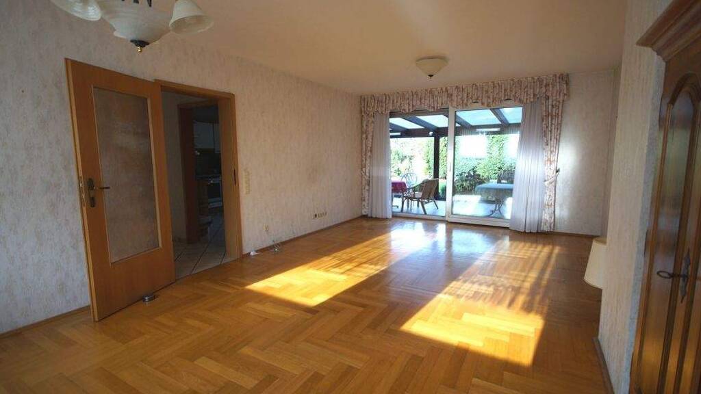 Das optimal aufgeteilte, lichtdurchflutete Wohnzimmer lässt sich perfekt in Ess- und Wohnbereich aufteilen. Hier schließt sich die überdachte geschlossene Sonnenterrasse und der große liebevoll angelegte Garten an.