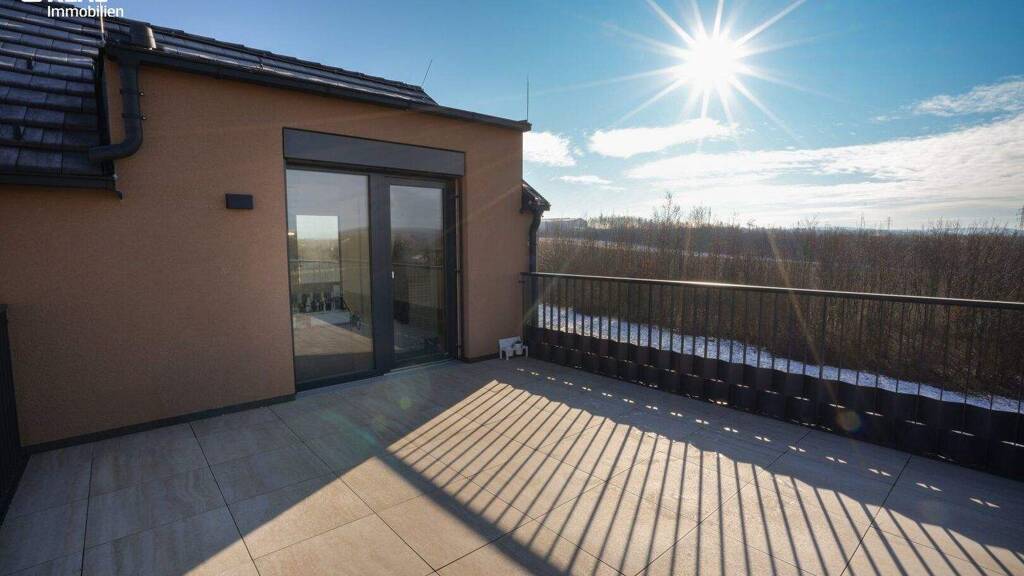 Ein besonderes Highlight sind die beiden Dachterrassen mit insgesamt rund 94 m² Freifläche. Der freie Blick ins angrenzende Grünland ist dauerhaft gesichert (Brunnenschutzgebiet) und bietet Ruhe, Privatsphäre sowie langfristige Wertbeständigkeit.