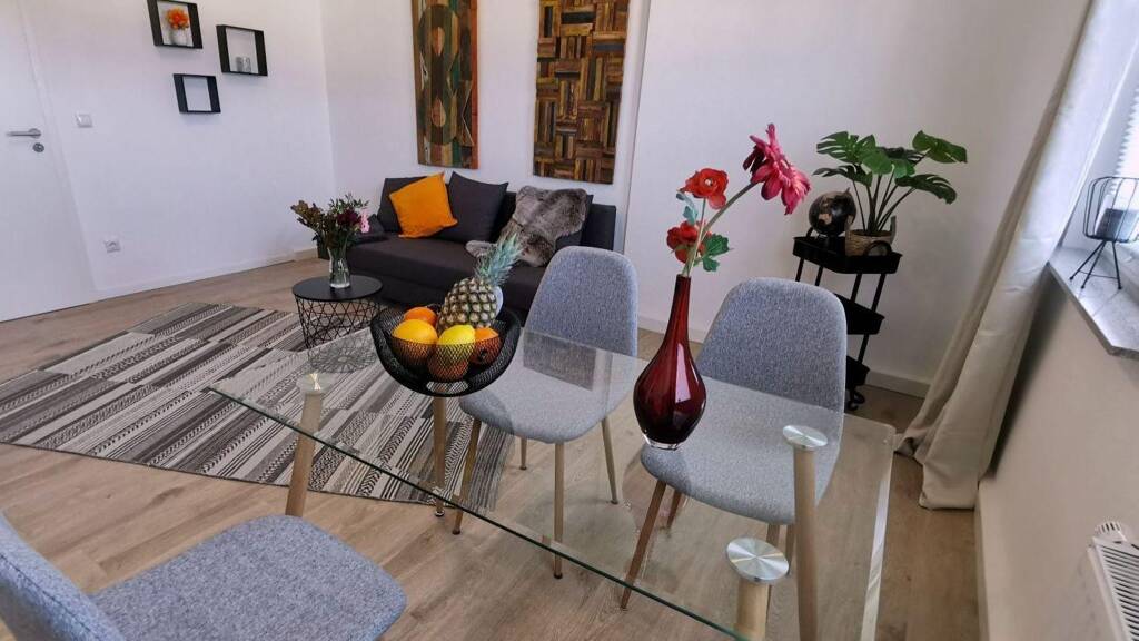 Weitere Informationen: - Bis zu 2 Erwachsene und 2 Kinder - Minimum Mietdauer 2 Monate -Nichtraucher Haus - Wohnzimmer inkl. Schlafsofa - Schlafzimmer Bett 180x200cm, auf Wunsch mit Extrabett - Küche, Bad mit Dusche, Flur, Abstellraum - TV, High-Speed-Internet inklusive - Spülmaschine, Mikrowelle, Kühlschrank mit Tiefkühlfach - Wasserkocher, Kaffeemaschine, 4 Ceran-Kochfelder, Backofen - Waschmaschine im Haus und Trockenraum inklusive - 1 privater PKW-Stellplatz im Hof inklusive - Bettwäsche und Handtücher inklusive - 14-tägiger Reinigungsservice inklusive - Heller und ruhiger Altbau, komplett modernisiert und saniert in 2021