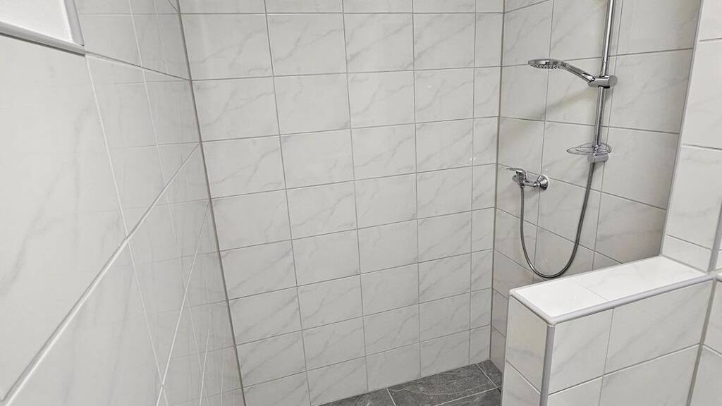 Das angrenzende Apartment war früher ein Ladenlokal und wurde 2023/2024 umfassend kernsaniert. Im Zuge der Sanierung erfolgten eine vollständige Dämmung von Wänden und Böden, der Einbau neuer Wasserrohre sowie eine komplett neue Elektroinstallation. Zudem wurden neue Fenster eingesetzt und ein modernes Badezimmer neu gestaltet. Die Wohnung ist auf zwei Wegen zugänglich, entweder über den eigenen Eingangsbereich oder über einen separaten Flur vom Erdgeschoss des Familienhauses. Die Raumaufteilung umfasst einen kombinierten Wohn- und Essbereich mit offener Küche, ein Schlafzimmer mit einer lichtdurchfluteten, öffnungsfähigen Lichtkuppel im Flachdach sowie das Badezimmer. Die Fenster sind ausschließlich zur Straßenseite ausgerichtet.