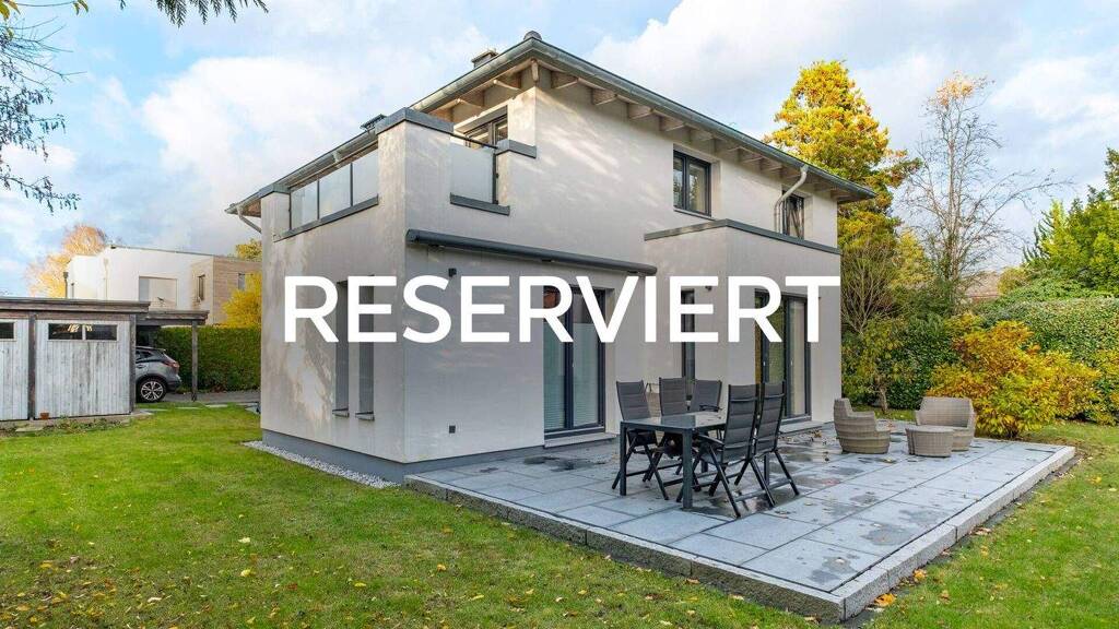 Die moderne Stadtvilla wurde 2011 auf einem ca. 660 m² großen Grundstück in zweiter Reihe einer Anliegerstraße errichtet. Das Haus verfügt über eine Wohnfläche von ca. 180 m², die sich durch eine durchdachte und familienfreundliche Raumaufteilung auszeichnet.