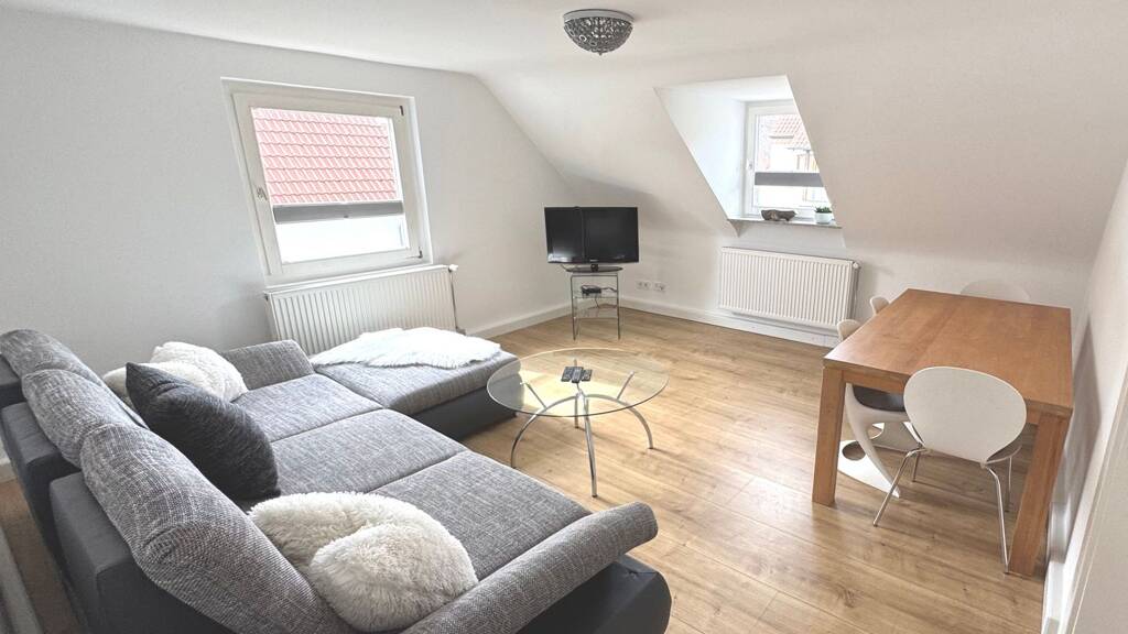 Die Wohnung befindet sich im Dachgeschoss eines idyllischen Zweifamilienhauses, liegt ruhig und bietet eine gute Verkehrsanbindung.