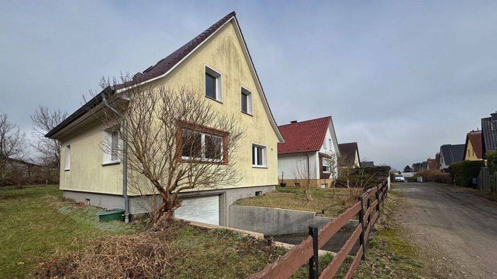 Das angebotene Wohnhaus wurde 1976 in massiver Bauweise errichtet. Es verfügt auf ca. 110 m² über 5 Zimmer. Im Erdgeschoss finden Sie ein großzügig geschnittenes Wohnzimmer sowie die Küche, ein weiteres Zimmer, eine einladende Diele und einen Windfang. Über die Treppe im Dielenbereich gelangen Sie ins Dachgeschoss. Hier befinden sich 3 Zimmer und ein großes Tageslichtbad mit Wanne. Außerdem bietet das Haus mit seinem praktischen Vollkeller viel Platz für Waschmaschine, Fahrräder oder andere Dinge des täglichen Bedarfs.