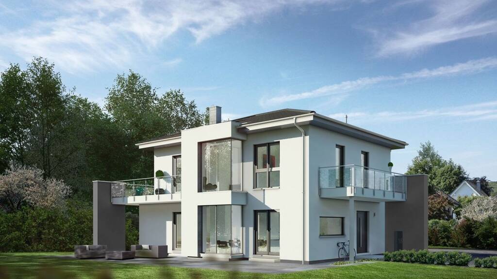 Wer das Besondere sucht, sollte einen Blick auf unsere Walmdachvilla werfen. Auch für kleinere Grundstücke bestens geeignet, überzeugt das schicke Stadthaus durch perfekte Raumaufteilung. Der licht- und raumspendende Erkeranbau verleiht dem kubistischen Baustil zusätzlichen Charme.