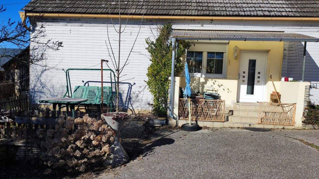 Das Wohnhaus wurde 1950 errichtet, umfasst rund 150 m² Wohnfläche und überzeugt mit einer durchdachten Grundstruktur. Über den Eingangsbereich gelangt man in den zentral gelegenen Vorraum, der derzeit als Esszimmer genutzt wird und das verbindende Element zwischen den einzelnen Räumen bildet. Direkt angrenzend befindet sich die Küche. Darüber hinaus stehen drei Schlafzimmer, ein Badezimmer sowie ein separates WC zur Verfügung.