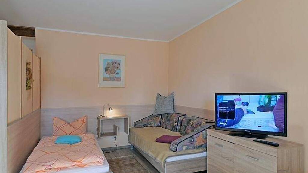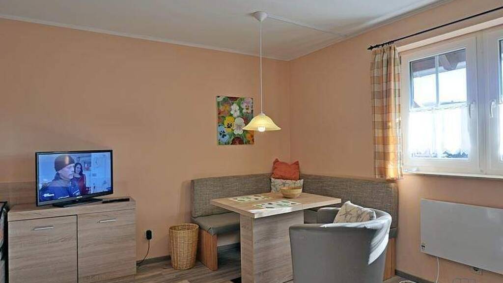 ### Please note the availability date! Bitte das Verfügbarkeitsdatum beachten! ### kleines möbliertes Apartment im Hinterhaus auf einem ehemaligen Bauernhof, ideal geeignet für Wochenendheimfahrer; großes Wohnzimmer mit Eckbank, Esstisch, Sessel, Einbauküche, TV; in der Seitennische Einzelbett und Couch; Eingangsbereich mit Garderobe und Kleiderschrank als Raumteiler; Bad mit Dusche und WC; WLAN, BW- und HT-Wechsel und fester PKW-Stellplatz ist inklusive; Mitnutzung des Fitnessraums mit Geräten und Waschmaschine, Garten und überdachtem Sitzplatz; ein individueller Reinigungsservice ist auf Wunsch gegen Aufpreis möglich (für 30,00 Euro / Monat); Pauschalmiete 650,00 Euro (bei max. 1 Person); Kaution 900,00 Euro; Endreinigung 75,00 Euro; Mindestmietdauer 3 Monate; Pflichtangaben zum Energieausweis: Energieausweis gültig bis: 05.11.2029; Baujahr Gebäude: 1995; Energieausweis: nach Verbrauch; Energieverbrauch: 132.9 kWh/(m²a); Energieeffizienzklasse: E; Primärer Energieträger: Heizöl