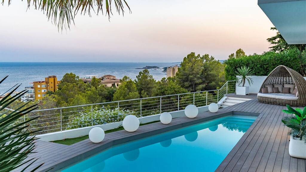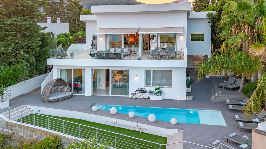 Diese charmante Familienvilla befindet sich in dem beliebten Wohnort Cala Mayor und bietet durch die erhöhte Lage einen traumhaften Meerblick. Auf einer Wohnfläche von ca. 306 m2 verteilen sich: 5 Schlafzimmer, 3 Bäder, 1 Gäste-WC, Wohn-Essbereich, Einbauküche, Abstellraum sowie eine Garage, die derzeit als Fitnessraum genutzt wird. Bodentiefe Fensterfronten erfüllen die Räumlichkeiten mit natürlichem Licht und ermöglichen einen herrlichen Panoramablick. Viel Platz und eine offene Raumgestaltung schaffen eine freundliche Atmosphäre. 3 Außenparkplätze erleichtern die An- und Abreise. Der Außenbereich begeistert mit einem erfrischenden Pool umgeben von Sonnenterrassen, einem Chillout-Bereich und einem gepflegten Garten. Der perfekte Ort, um mit Freunden und Familie unvergessliche Stunden zu verbringen oder einfach nur zu entspannen.