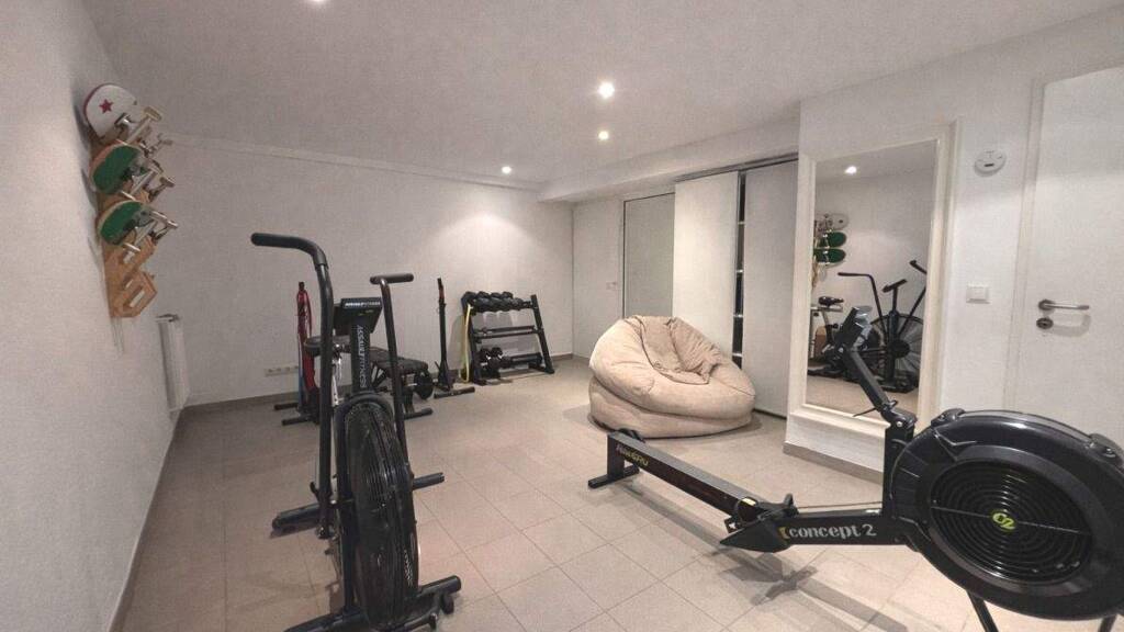 Die fünf Zimmer verteilen sich über die verschiedenen Ebenen und beinhalten auch einen hellen Wintergarten, der sich hervorragend als Home-Office eignet, sowie ein gemütliches Zimmer im ausgebauten Dachbereich. Zusätzliches Potenzial bieten die Flächen im Untergeschoss, die derzeit als Fitnessraum genutzt werden, sowie ein praktischer Lagerraum unterhalb der Garage mit direktem Zugang zum Garten - ein idealer Platz für Werkzeug und Gartengeräte.
