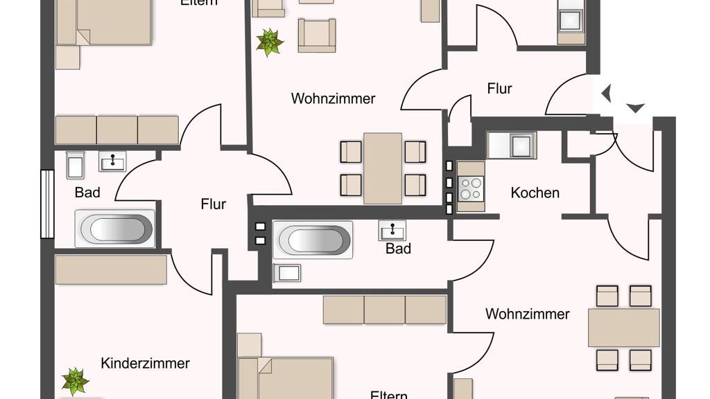 - Bodenbelag: Fliesen, Parkett, Laminat
