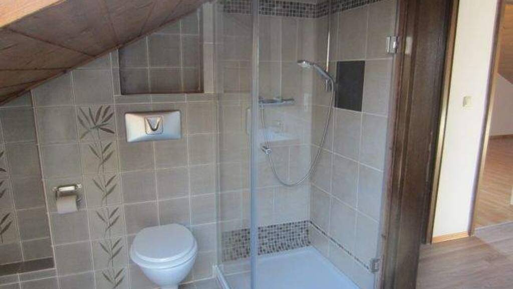 Die Böden sind gefliest oder mit Laminat belegt. Die Wohnfläche der Doppelhaushälfte beträgt ca. 122 qm. Die Wohnfläche der Einliegerwohnung beträgt ca. 36 qm. In der Doppelhaushälfte befinden sich vier Schlafzimmer und ein Wohnzimmer. Außerdem befindet sich im EG die Küche, eine großzügige Diele die Küche und die Speise. Ein Gäste WC und der Windfang. Vom Wohnzimmer erreichen Sie die beiden Balkone. Im Obergeschoss befindet sich noch das Bad mit Wanne und Dusche. Im Wohnzimmer kann ein Holzofen angeschlossen werden. In der Einliegerwohnung befindet sich die Küche mit Wohn- Esszimmer und ein Schlafzimmer und ein Bad. Die Einliegerwohnung hat eine Terrasse und einen Garten.