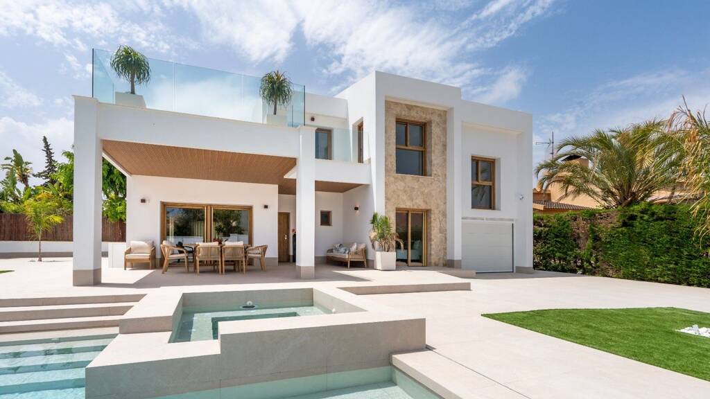 Eine spektakuläre, luxuriöse, freistehende Villa mit 4 Schlafzimmern, 5 Bädern und privatem Pool in Campoamor (Alicante), einer außergewöhnlichen Umgebung, die hochwertige Strände, ein gesundes Klima und umfangreiche Dienstleistungen vereint - ideal, um Komfort und Lebensqualität in Meeresnähe zu genießen. Nur 800 Meter entfernt liegen die beliebten Strände Cala de Campoamor und Playa de los Diez Picos. Die Gegend zeichnet sich durch ihre Privatsphäre und Ruhe aus. Außerdem bietet sie einen nahen Zugang zu geschützten Naturräumen wie der Sierra Escalona mit ihren Pinienwäldern und Wanderwegen sowie zu den Routen zwischen den Salinen von San Pedro del Pinatar und Torrevieja, die für ihre Artenvielfalt und einzigartigen Landschaften bekannt sind.