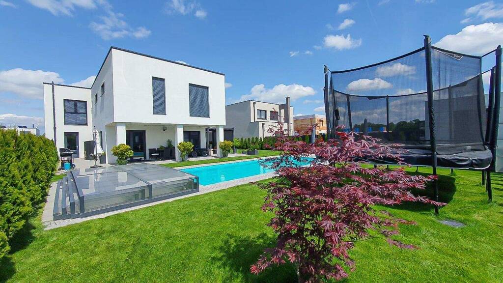 Im Außenbereich setzt sich das hochwertige Wohnkonzept fort: Ein beheizter Salzwasserpool mit Gegenstromanlage, weitläufige Terrassenflächen, ein stilvolles Gartenhaus sowie eine durchdacht angelegte Gartenlandschaft schaffen einen privaten Rückzugsort mit hohem Erholungswert - ideal für entspannte Sommertage und lange Abende im Grünen. Ein Zuhause für Menschen, die Design, Qualität und Komfort in einer der begehrtesten Regionen des Nordburgenlands schätzen.