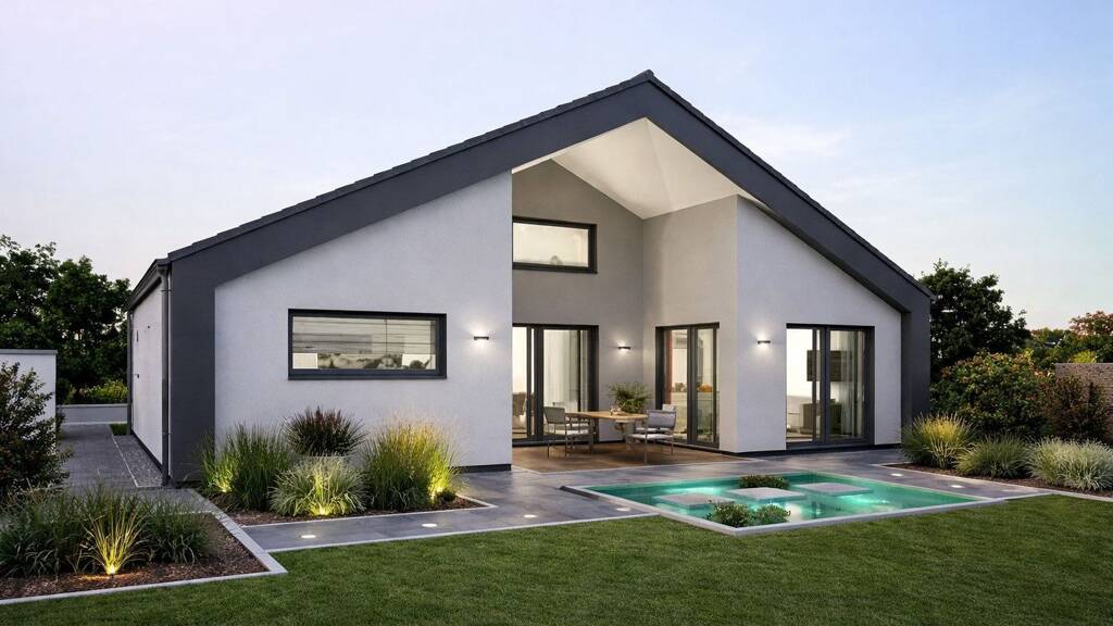 Wohnkomfort auf einem neuen Level - und das auf nur einer Ebene. Dieser Bungalow besticht durch ein luftiges Raumgefühl mit hohen Decken und lichtdurchfluteten, offenen Wohnbereichen. Die kluge Trennung zwischen den geselligen Zonen und den privaten Rückzugsorten wie Schlaf- und Arbeitszimmer schafft Struktur und Ruhe. Das Highlight: Die geschützte, dreiseitig begehbare Terrasse bietet maximale Privatsphäre, selbst in lebendigen Nachbarschaften. Ihr perfekter Ort für entspannte Sommertage.