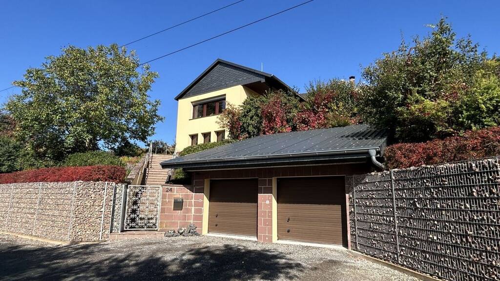 - großzügiger Winkelbungalow voll unterkellert - unverbaubare Südhanglage - teilweise überdachte Terrasse mit Fernblick - erneuerte Fenster - energetisch saniert in 2014 mit Wärmedämmverbundsystem - zwei Bäder (ein Bad behindertengerecht mit Fußbodenheizung) - Gäste-WC - Südfenster mit elektrischer Beschattung/Markise - gepflegter Garten mit Baumbestand - umzäuntes Grundstück - Doppelgarage und Stellplätze vor dem Haus