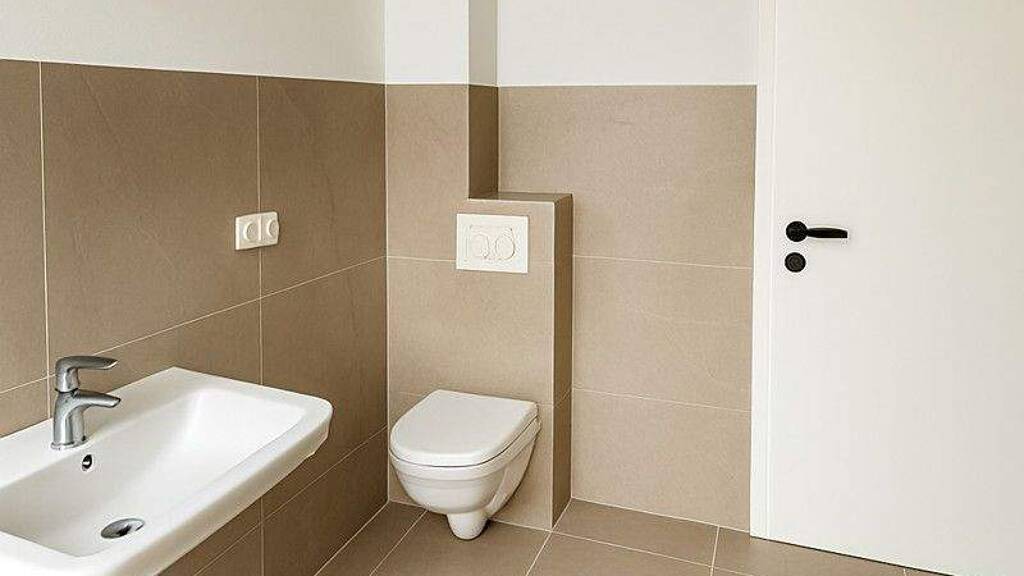 Neue Badezimmer mit Dusche, Waschbecken und WC