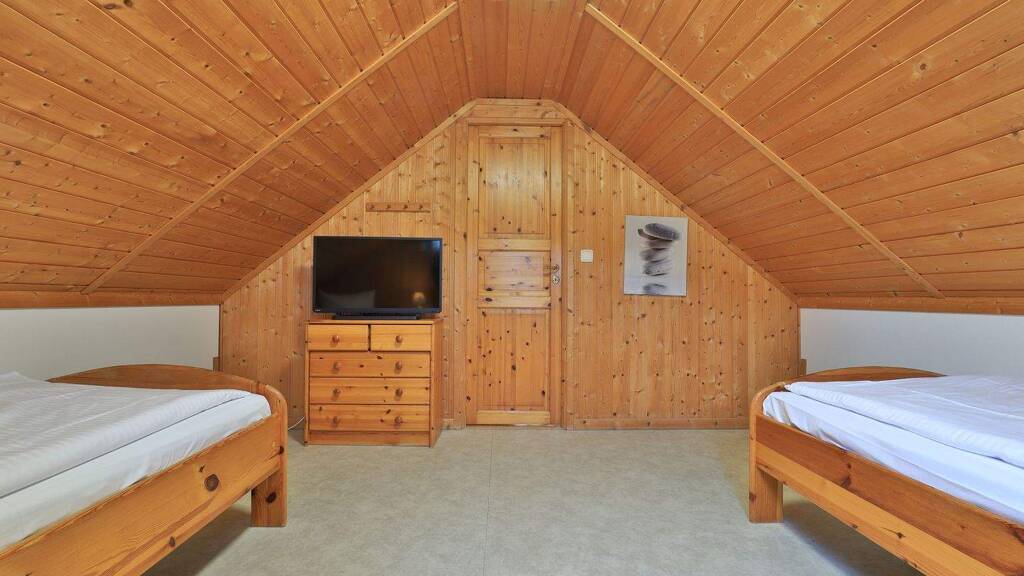 Das ausgebaute Dachgeschoss mit Galeriebereich und abgeteiltem Schlafbereich (ausgestattet mit 2 Einzelbetten, TV und Stauraum in den Abseiten) verleiht dem Grundriss des Hauses einen besonderen Charakter.