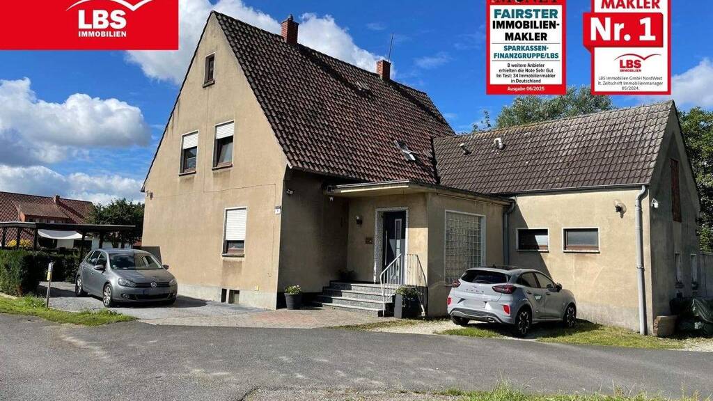 In ländlicher Lage von Kirchlengern-Südlengern steht dieses großzügige Wohnhaus zum Verkauf. Die Wohnfläche von ca. 186 m² verteilt sich großzügig auf zwei Ebenen. Im Erdgeschoss gelegen ist eine Wohnung mit zwei Schlafzimmern, ein Esszimmer, eine Küche, ein Wohnzimmer mit Zugang zur Terrasse sowie ein Tageslichtbad mit Badewanne und ein WC. Im Dachgeschoss befindet sich eine weitere Wohneinheit mit zwei Schlafzimmern, Wohnzimmer, Esszimmer, Küche sowie ein WC und ein Tageslichtbad mit Dusche. Die Immobilie überzeugt vor allem durch ihre flexible Nutzungsmöglichkeiten. Ob als großes Einfamilienhaus, Zweifamilienhaus, Wohnen mit Mehrgenerationen oder Arbeiten und Wohnen unter einem Dach; diese Immobilie wird allen Ansprüchen gerecht. Genügend Abstellraum befindet sich im Vollkeller oder im Stallgebäude. Ihre Autos parken bequem auf dem großen Hof oder im Carport. Das ca. 683 m² große Grundstück mit Terrasse und überdachtem Freisitz ist pflegeleicht angelegt und bietet weiteren Raum zur persönlichen Entfaltung.