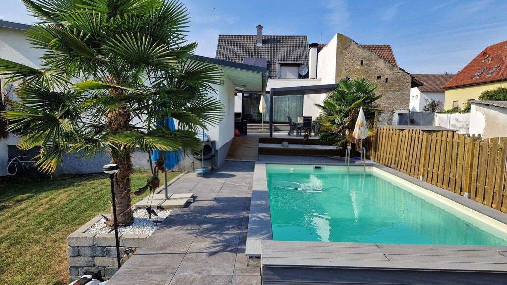Doppelhaushälfte mit großem Innenhof, Garage (mit separatem Badezimmer), Terrasse, Pool, Keller, Speicher (ausbaufähig) Zusätzliche Wohnfläche vorhanden.