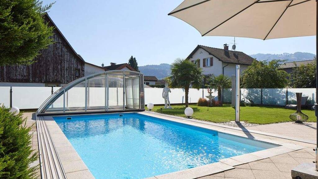 . Großer Garten mit traumhaftem Pool - Ihre private Wohlfühloase . Wunderschöne Sonnenterrasse - perfekt für lange Sommerabende . Helle, großzügige Räume mit hochwertiger Ausstattung . Vollständig eingezäunte Liegenschaft - Sicherheit & Rückzug . Maximale Privatsphäre - genießen Sie Ruhe & Geborgenheit . Nur 10 Minuten mit dem Fahrrad zum Bodensee - Lebensqualität inklusive . Der Pool ist beheizt und überdacht - ganzjährig nutzbar