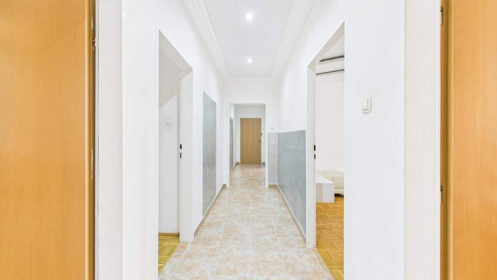 Vom zentralen Vorraum aus erschließen sich alle Räume dieser Wohnung.