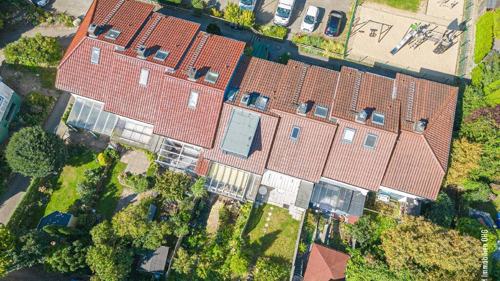 Dieses gepflegte und vermietete in Split-Level-Bauweise erstellte Reihenmittelhaus aus dem Jahr 1966 verfügt über 3,5 Zimmer, die sich auf ca. 85 m² Wohnfläche verteilen. Das Haus ist teilunterkellert und hat einen direkten Zugang zum Garten. Vom Eingangsbereich aus erreichen Sie, direkt über dem Windfang, das großzügige auf zwei Ebenen gebaute Wohn-/Esszimmer, das über einen Zugang zur sonnigen Terrasse mit Markise verfügt. Eine Küche mit Einbauschränken und Markengeräten sowie ein Gäste-WC vervollständigen das Erdgeschoss. Über eine Treppe erreichen Sie das Dachgeschoss. Hier finden sich ebenfalls auf zwei Ebenen zwei Schlafräume, ein Arbeitszimmer sowie ein modernes Vollbad. Das Tageslicht strahlt über ein Oberlicht in das Bad. Beheizt wird das Haus mit einer Gas-Brennwerttherme aus dem Jahr 1996. Ein Garten mit eigener Zuwegung für Reihenhausbesitzer sowie einen kleinen Vorgarten vervollständigen diese interessante Immobilie. Vor dem Grundstück in einer ruhigen Anliegerstraße gibt es öffentliche Stellplätze und einen Kinderspielplatz. Das Haus ist zurzeit vermietet.