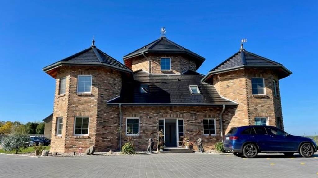 Zum Verkauf steht ein in seiner Art einmaliges Einfamilienhaus mit ca. 364 m2 Wohnfläche, verteilt auf 7 Zimmer, einschließlich des außergewöhnlichen Türmchenzimmers im Dachgeschoss. Vorhanden sind weiterhin die sehr große Küche (in 2025 renoviert im Bereich Fliesen/Maler) mit hochwertiger Einbauküche, 5 Bäder (jedes Zimmer im Obergeschoss verfügt über ein eigenes Badezimmer mit Badewanne und Dusche und zusätzlich über je einen Anschluß für eine Küchenzeile) und einem derzeit als Büro genutzten Raum von ca. 49 m2 im Erdgeschoss, ebenfalls mit Bad und Küchenanschlüssen.