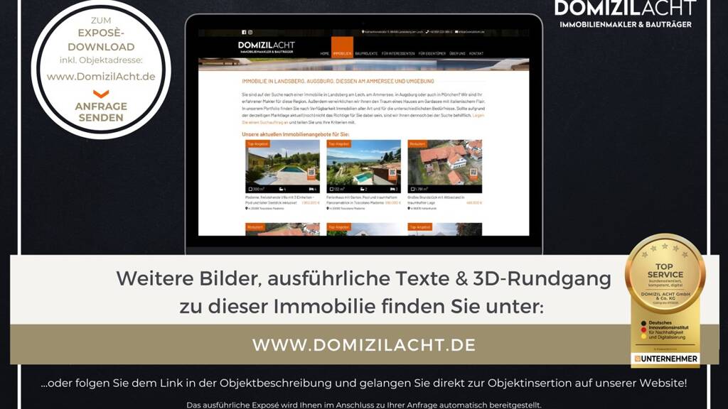 SIE MÖCHTEN MEHR WISSEN? Die vollständige Objektbeschreibung, noch mehr Bilder und einen virtuellen 360-Grad-Rundgang zu dieser Immobilie finden Sie auf unserer Website unter: https://www.domizilacht.de/