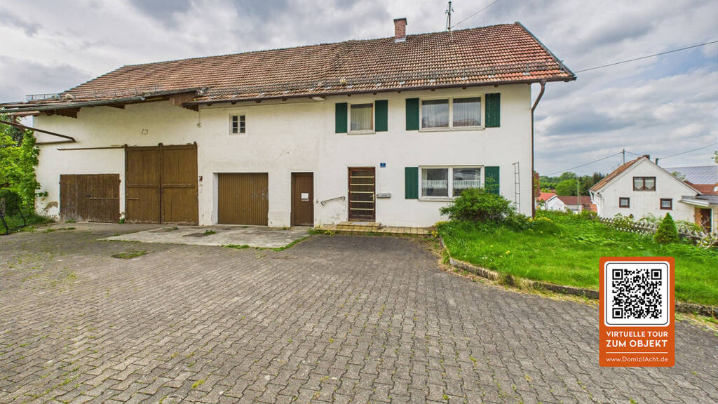 - Ca. 983 m² großes Grundstück in ruhiger Ortslage von Geretshausen (Gemeinde Weil) - Altes Bauernhaus, Baujahr unbekannt, geschätzt ca. 1925 - Ca. 118 m² Wohnfläche im Erd- und Obergeschoss, Nutzfläche ca. 411 m² - Nicht ausgebautes Dachgeschoss mit ca. 58 m² zusätzlichem Potenzial - Insgesamt 4 Zimmer: Wohnzimmer, 3 Schlafzimmer + Wohnküche - Badezimmer und separates Gäste-WC - Teilüberdachter Balkon im Obergeschoss - Doppelgarage und Kartoffelkeller - Angrenzende Scheune mit Heuboden und rückwärtigem Gebäudeteil - Kleiner Innenhof mit Zugang zu weiterer Scheune, Stallung, Werkstatt und Abstellraum - Holzfenster, einfache Ausstattung, komplett sanierungsbedürftig - Keine Grundrisse oder Bauunterlagen vorhanden - Neubebauung nach §34 BauGB möglich (Nachbarschaftsbebauung) - Ideal für Eigennutzer mit handwerklichem Geschick oder als Feriendomizil
