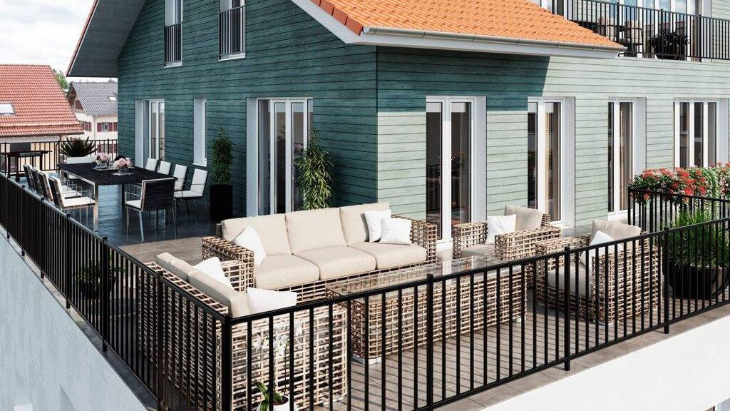 Das Highlight ist die knapp 44 m² große Südwest-Dachterrasse sowie der zusätzliche Südbalkon.