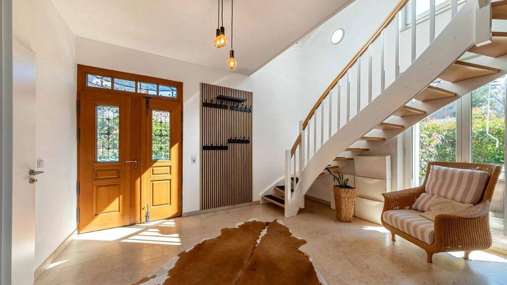 Der großzügige Eingangsbereich mit einer imposanten Wendeltreppe nimmt Sie in Empfang.