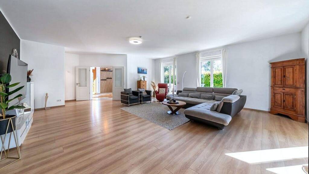 * Ruhige Lage * Massivbauweise * Gehobene Ausstattung * Heizung von NIBE - Strom Wärmepumpe * PV-Anlage mit 15kw/h/Peek - Akku 6500 kWh Speicherkapazität * Fußbodenheizung (außer Dachgeschoss) * Solaranlage mit 15 kWh Peek und 6500 kWh Akku Speicherkapazität * 3-fach-verglaste Fenster aus Holz mit 6-fach-Pilzkopfverriegelung * 3 Badezimmer - Erdgeschoss: 1 TGL Duschbad (bodentiefe Dusche) mit Bidet + Pissoir + WC - 1 TGL Wannenbad (Bad en Suite) mit Bidet + WC - 1 TGL Duschbad (bodentiefe Dusche) mit Bidet + WC * Böden: Laminat / Marmor * Einbauküche von Novel mit Falcon Induktionsherd und Miele Kombigeräten * Markise * Zisterne 5 Kubik * Teich * Heizstrahler * Balkon im 1 OG * 2 Terrassen im EG (teilweise überdacht) * Carport * 3 Stellplätze