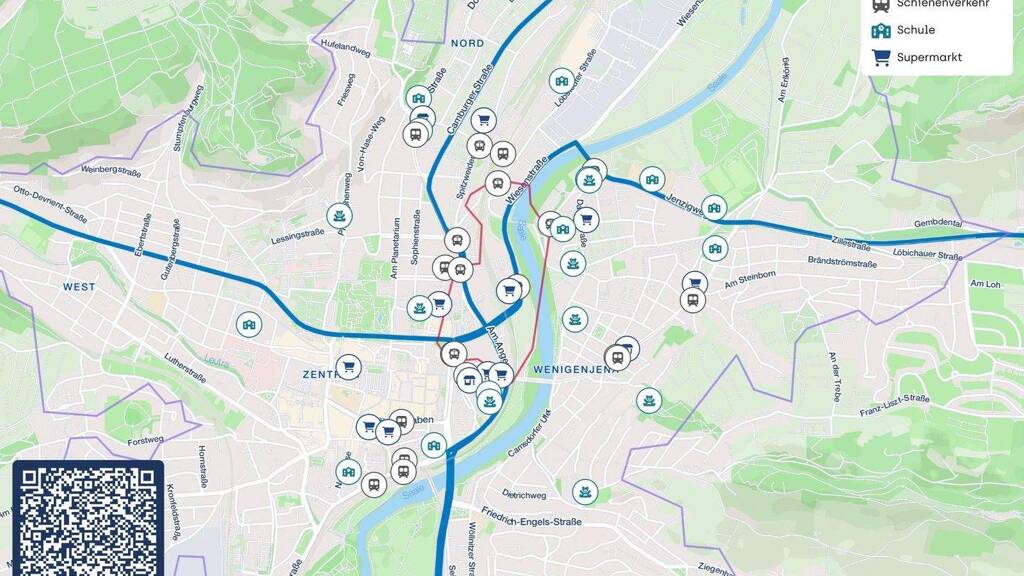Die Verkehrsanbindung ist hervorragend. Die nächste Bushaltestelle ist nur wenige Schritte entfernt, und auch die Straßenbahnhaltestelle ist in wenigen Minuten zu Fuß erreichbar. Der Paradiesbahnhof und Saalbahnhof bieten eine schnelle Anbindung an das regionale und überregionale Bahnnetz. Beide Bahnhöfe sind in 15 Minuten zu Fuß erreichbar.