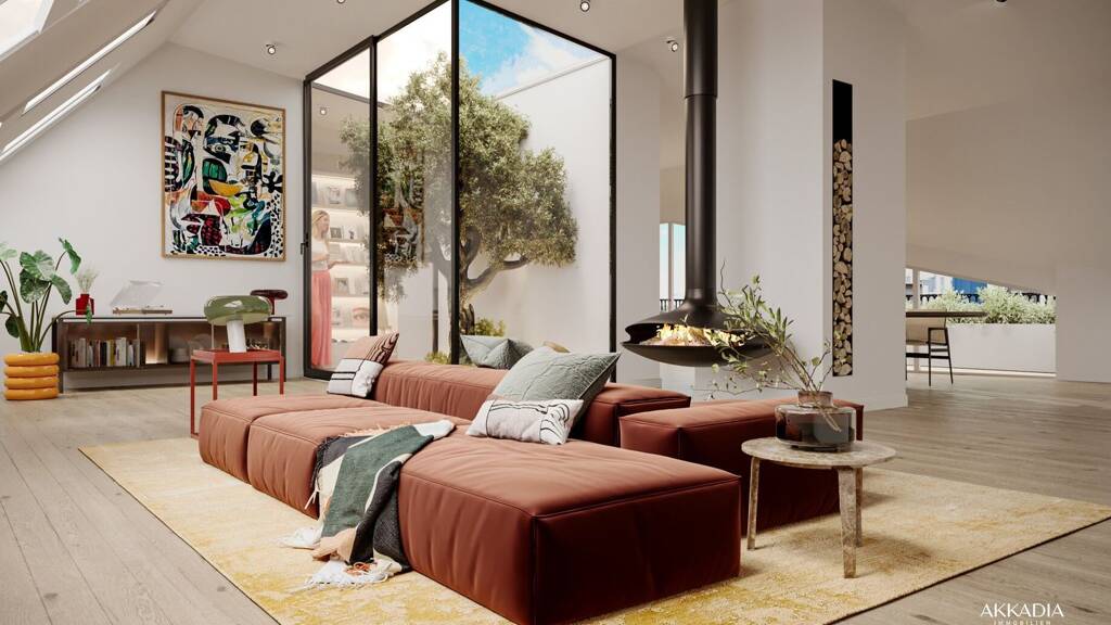 Das Penthouse erstreckt sich über die gesamte Etage und bietet absolute Privatsphäre. Über drei Meter hohe Decken, bodentiefe Glasfronten und zwei großzügige Terrassen nach Süden und Westen schaffen eine lichtdurchflutete Wohnwelt. Herzstück ist das offene Atrium, das Tageslicht mitten im Loft ermöglicht. Edle Dielenböden, hochwertige Fliesen, ein Lift direkt in die Wohnung und zwei komfortable Garagenplätze direkt am Haus unterstreichen den exklusiven Charakter. Die Raumaufteilung ist noch flexibel und kann ganz nach Ihren Vorstellungen gestaltet werden.