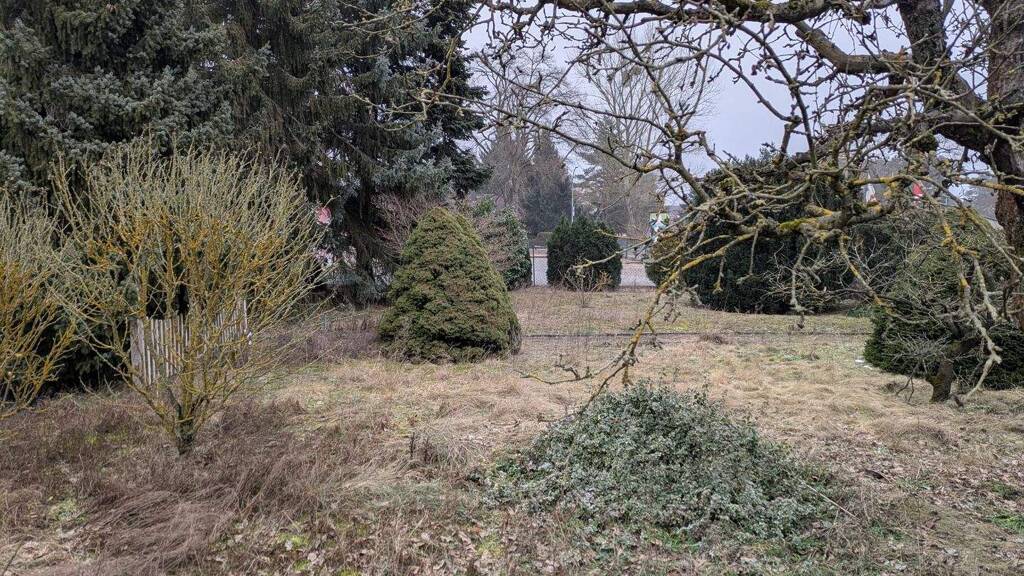 Aktuell ist das GrundstĂĽck mit einer massiv errichteten Laube sowie einem Schuppen bebaut.